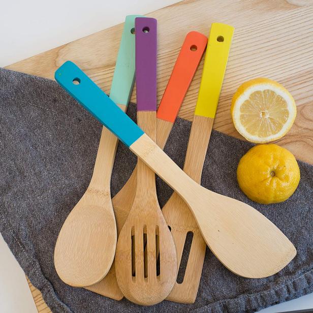 Over time, wood tends to crack, especially if it is exposed to changes in temperature or left to soak in water. (This sounds a lot like what you do when you cook and do the dishes, doesn’t it?) Also, wood is good at taking in smells. Because of this, I like to switch out my wooden spoons every spring (except for the one I used in culinary school). This five-piece set is affordable and can’t go wrong. The bright, colorful handles will make everything in your kitchen feel new and fresh. Buy Now